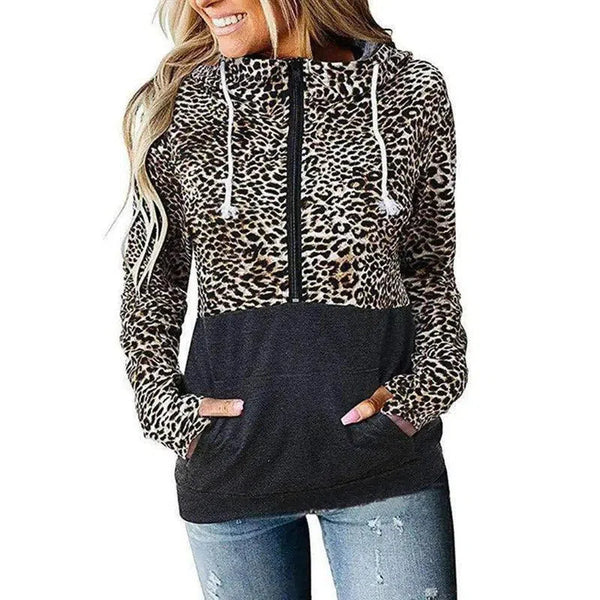 Naisten Leopardikuvioinen huppari, jossa on taskut