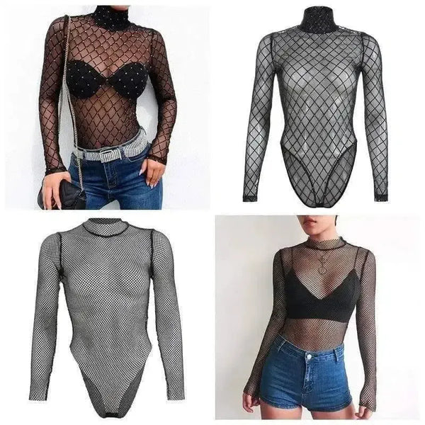 Naisten Mesh Bodysuit pitkähihainen toppi