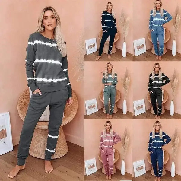Pitkähihainen housupari raidallinen kravatti-värjätty gradienttipyjama