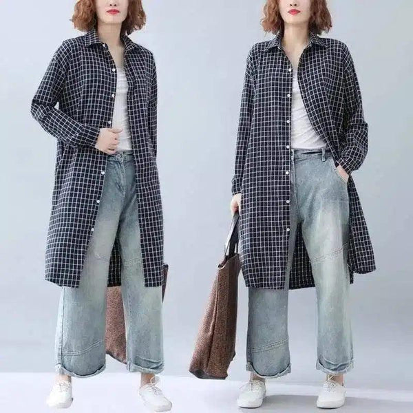 Ruudullinen harjattu löysä ja ohut pitkähihainen paita