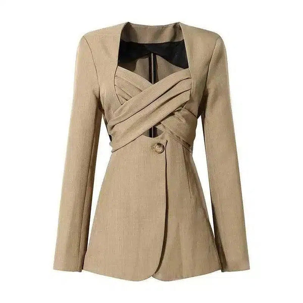 Naisten räätälöity napitettu bleiseri ainutlaatuisella kauluksella