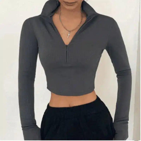 Naisten vetoketjullinen Crop huppari pitkähihainen