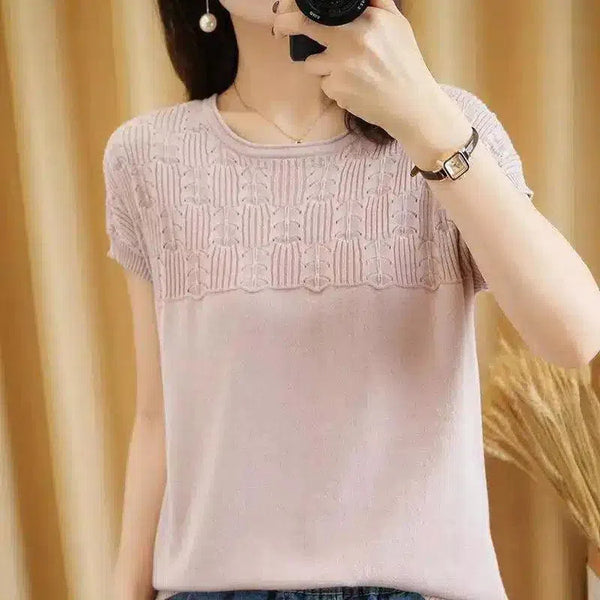 Naisten lyhythihainen neuletoppi kuvioidulla mallilla