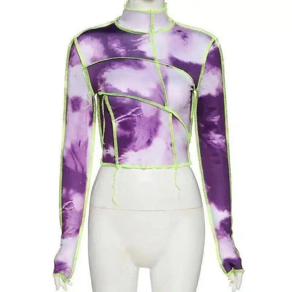 - Muotoilu: Silmäänpistävä solmiovärikuvio violetilla ja kontrastiraidoilla