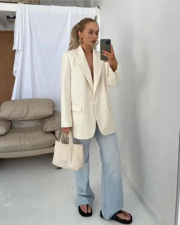 Naisten räätälöity bleiseri ja leveälahkeiset farkut