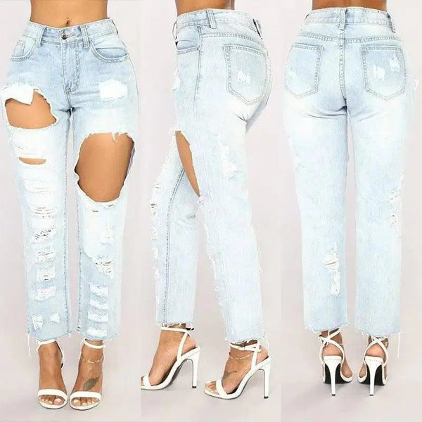 - Suunnittelun yksityiskohdat: Suuri, huomiota herättävä reikä trendikkääseen, ahdistuneeseen ulkonäköön