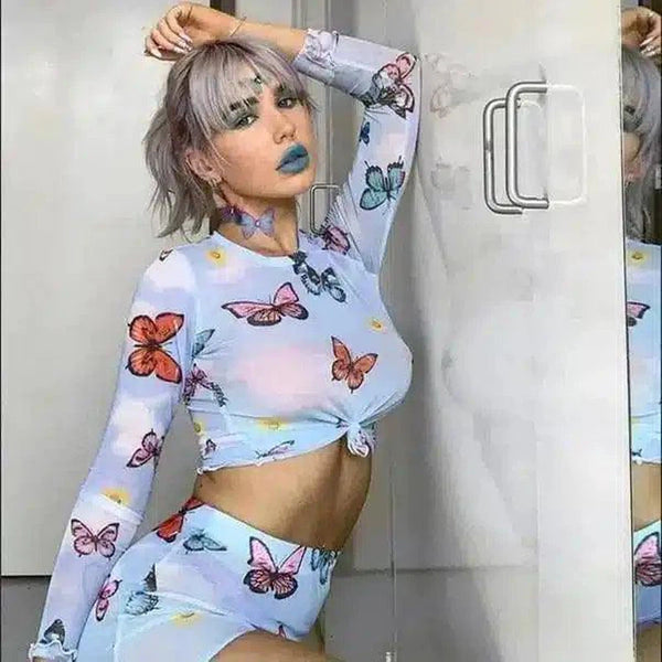Perspektiivinen painettu perhonen pitkähihainen T-paita