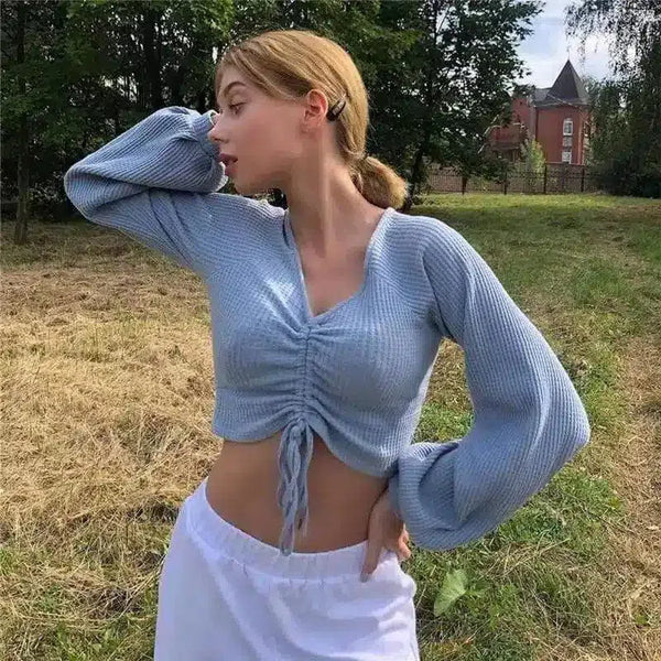 Vaaleansininen Ruched Crop Top - Muodikas ja mukava