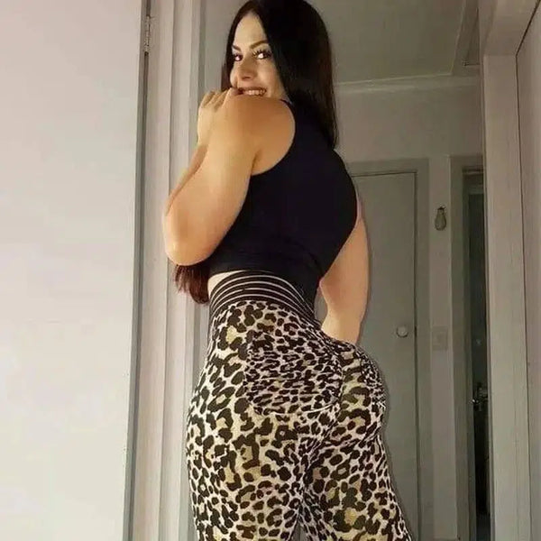 - Muotoilu: Rohkeat leopardikuvioiset legginsit, joissa on tyylikäs vyötärönauha
