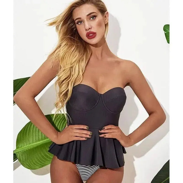 Tuotteen kuvaus: Triangle Tube Top Pleated Skirt Split Swimsuit Women