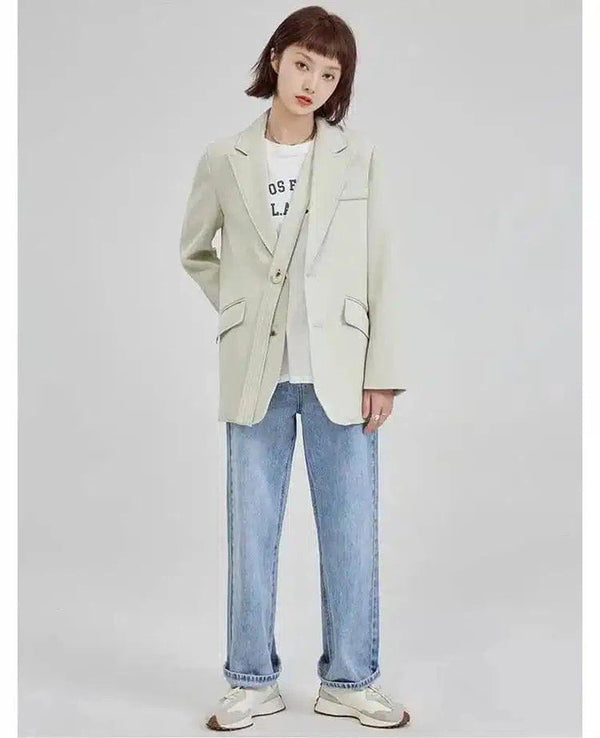 Naisten rento bleiseri ja farkkujen yhdistelmä