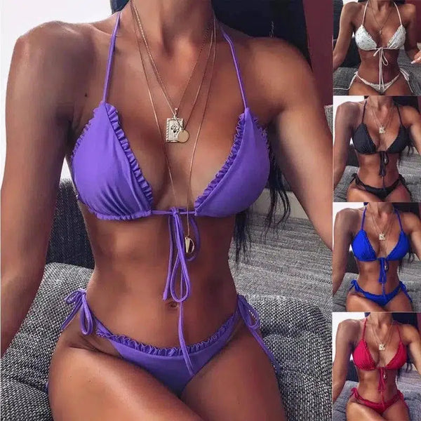 Pieni röyhelöinen split painettu kaksipuolinen bikini