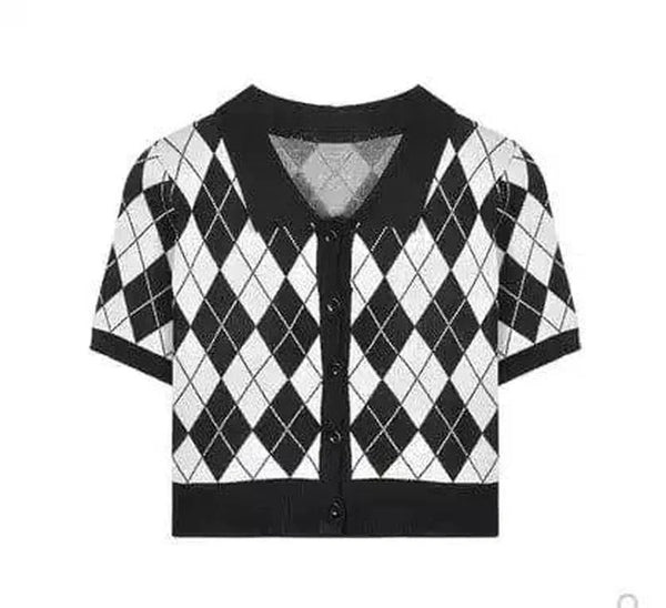 - Muotoilu: Mustavalkoinen argyle-kuvio