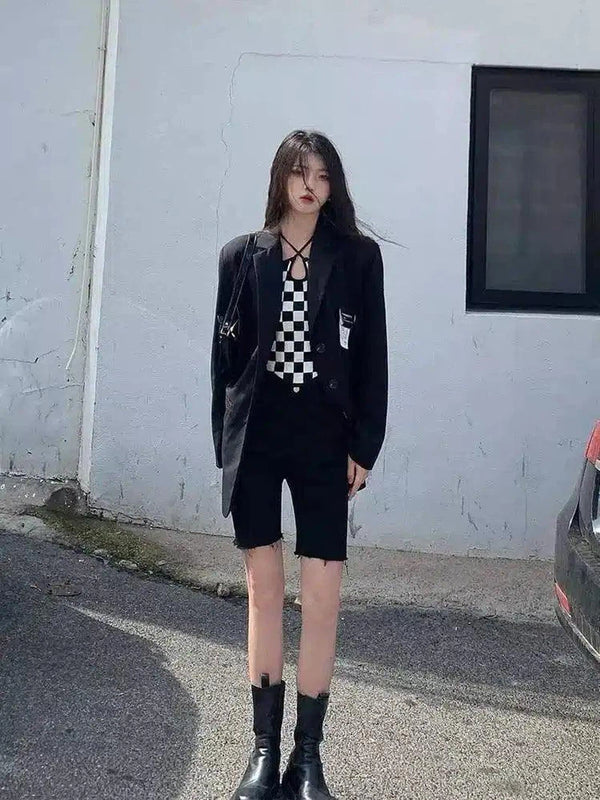 - Vaatteen tyyppi: Naisten kaksiosainen kokonaisuus, jossa bleiseri ja shortsit