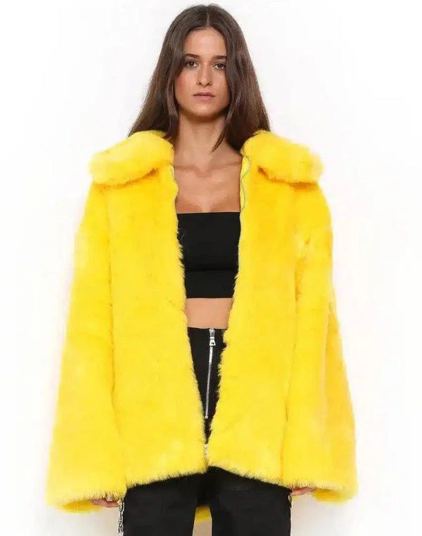 Kirkas tekoturkistakki naisille