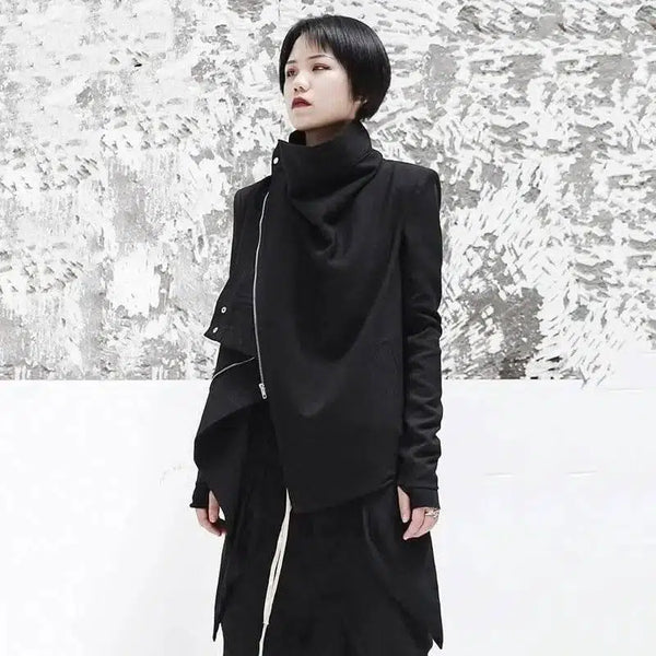 Turtleneck pitkähihainen musta Zip epäsäännöllinen takki