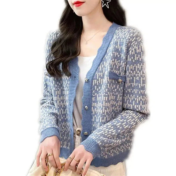 Naisten neulottu neuletakki, jossa on nappisuljenta