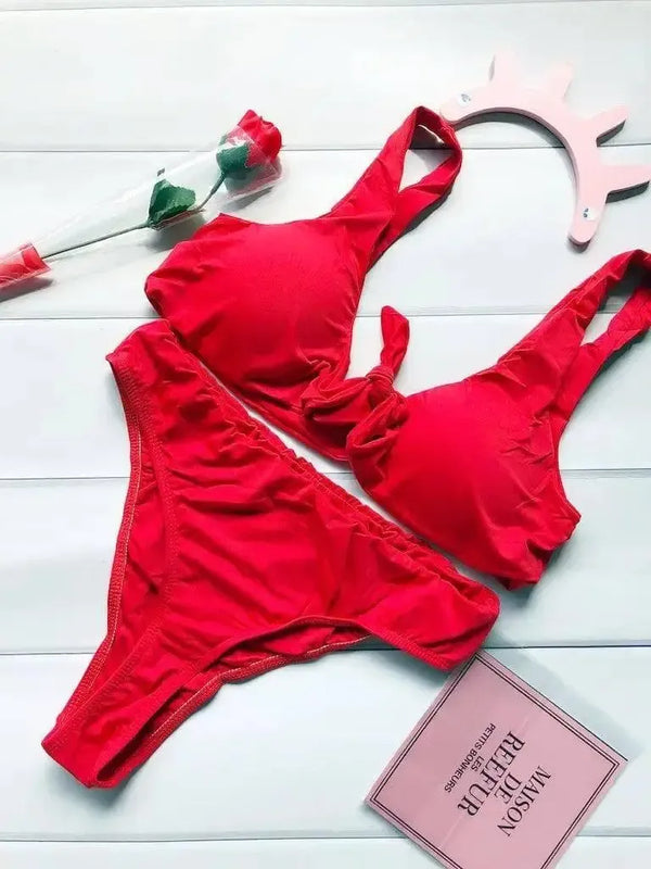 Merkit: Solmiomallinen bikinisetti uimapuku- Muotoilu: Tyylikäs solmiobikinisetti