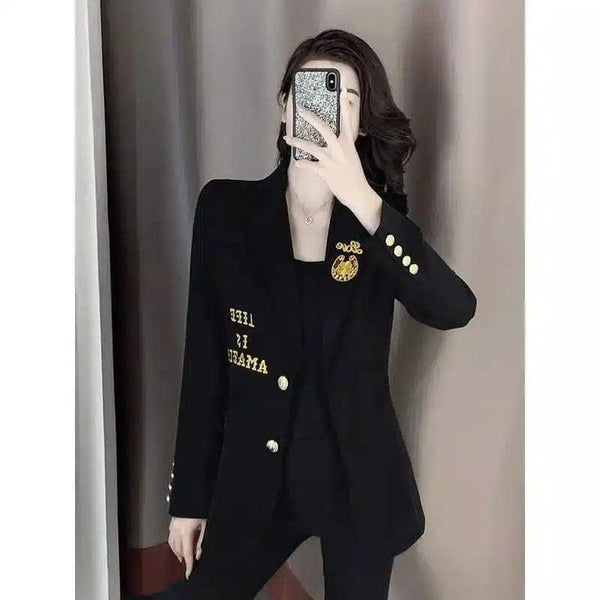 Naisten räätälöity bleiseri, jossa on kultaiset nappikoristeet