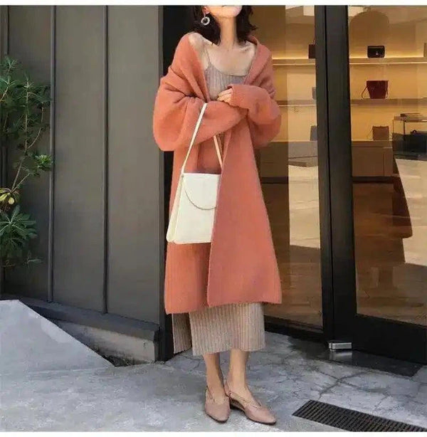 Lämmin pitkä takki & neule mekko naisten muoti Combo