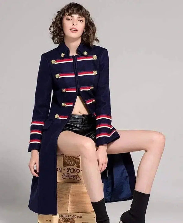 Vintage muoti raidallinen metalli painike sininen punk / sotilaallinen pitkä
