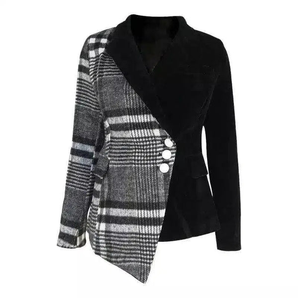 Naisten ruudullinen epäsymmetrinen bleiseri, jossa on napit