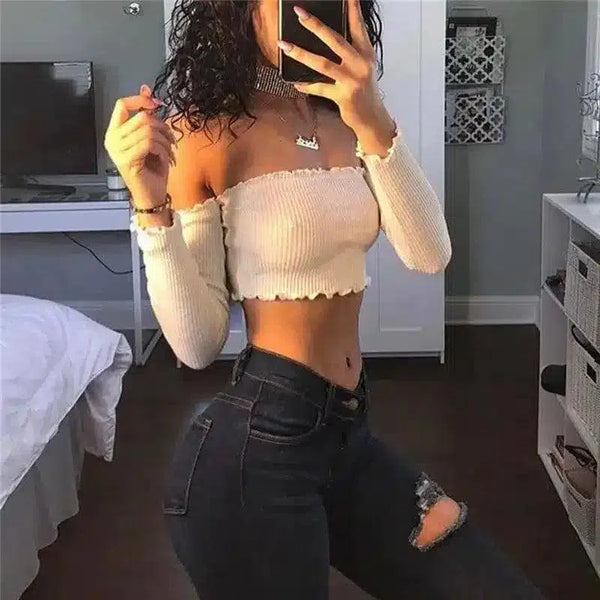 Naisten Cropped Off-Shoulder neuletoppi