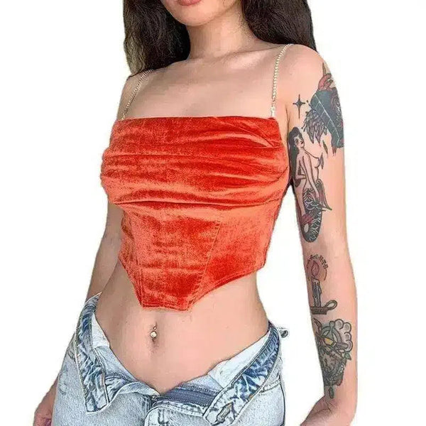 Samettinen olkaimeton Crop Top, jossa on ketjuhihnat