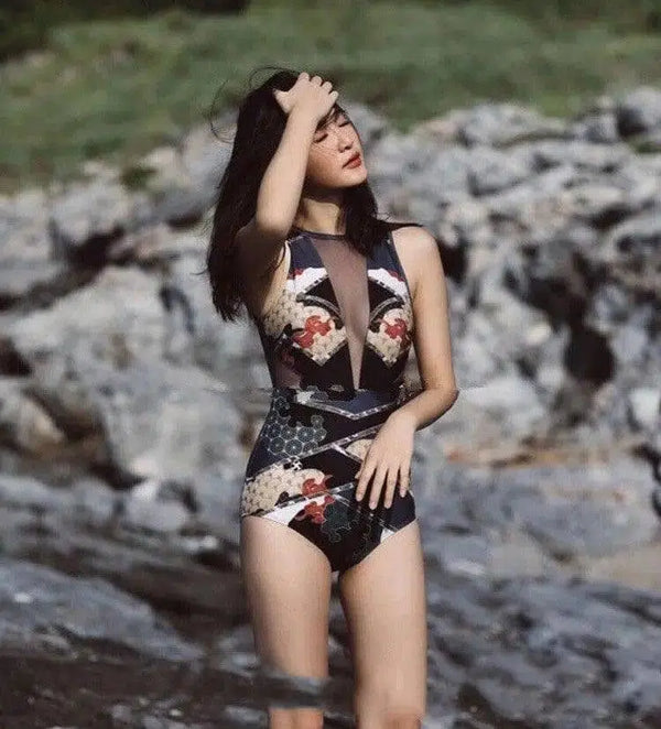 - Muotoilu: Elegantti yksiosainen uimapuku, joka on saanut inspiraationsa Kaakkois-Aasian kulttuurimotiiveista.