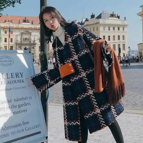Tuotteen kuvaus: Löysä ja ohut pieni tikattu villakangastakki Trend