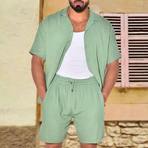 Miesten löysä Stretch rento puuvilla pellava kaksiosainen puku