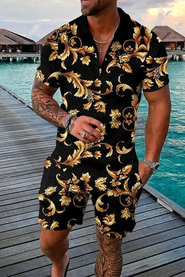 Tuotteen kuvaus: Miesten muoti tulostaa läppä vetoketju kaksiosainen puku