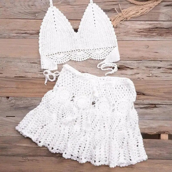 Muodikkaat modernit käsinkudotut rantalomakäyttöön tarkoitetut olkaimelliset bikinit