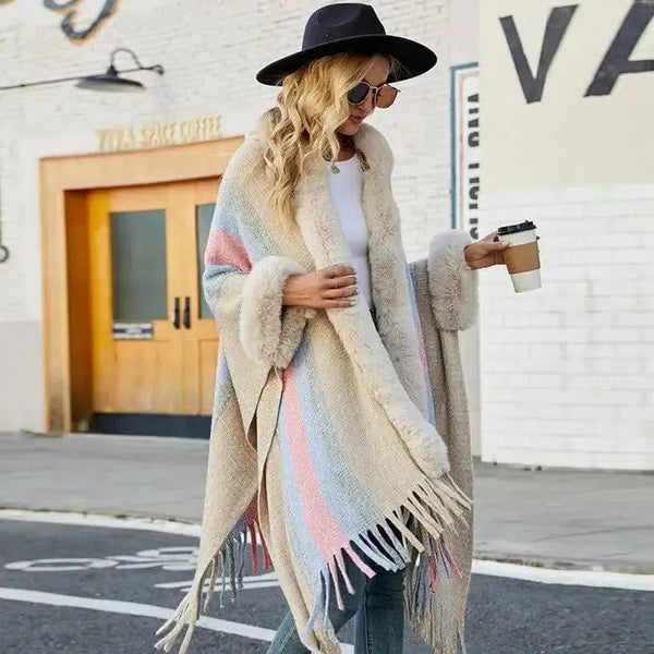 Naisten hupullinen viitta syksyn ja talven raidallinen