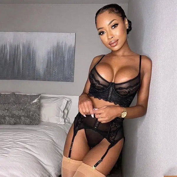Tuotteen kuvaus: Naisten pitsi silmäripsi tikkaus rintareppu alusvaatteet kolmiosainen