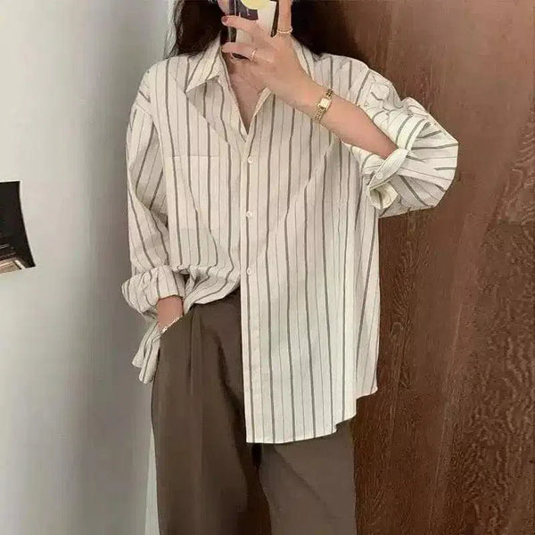 Naisten raidallinen napillinen rento paita
