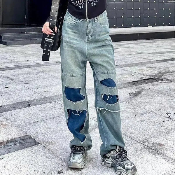 Tuotteen kuvaus: Naisten suorat housut repeytynyt laihdutus tikkaus farkut