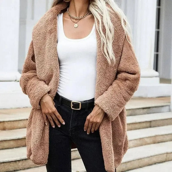 Ruskea Plush Cardigan pitkähihainen Trendikäs kaksipuolinen