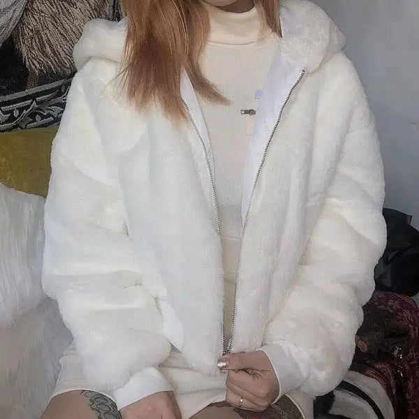 Tuotteen kuvaus: Casual Plush Hooded Short Plush Coat for Women