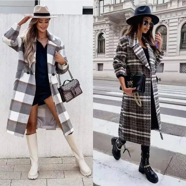 Ruudullinen puolipitkä takki Lapel Tie villakangastakki