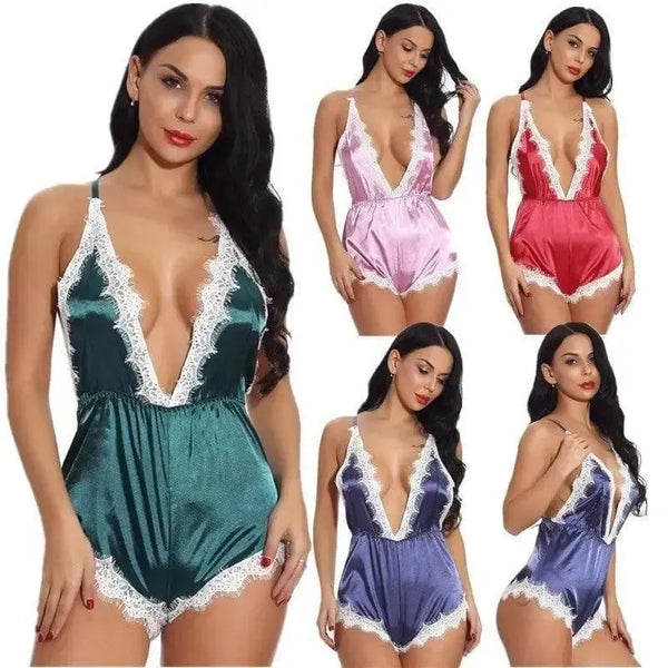 - Alusvaatteet Satiini Pitsi Pyjama, jossa on selkäpuolen ristikkomalli