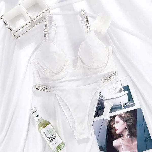 Tuotteen kuvaus: Push Up Deep V Letter Strassit Bra Set Naisten