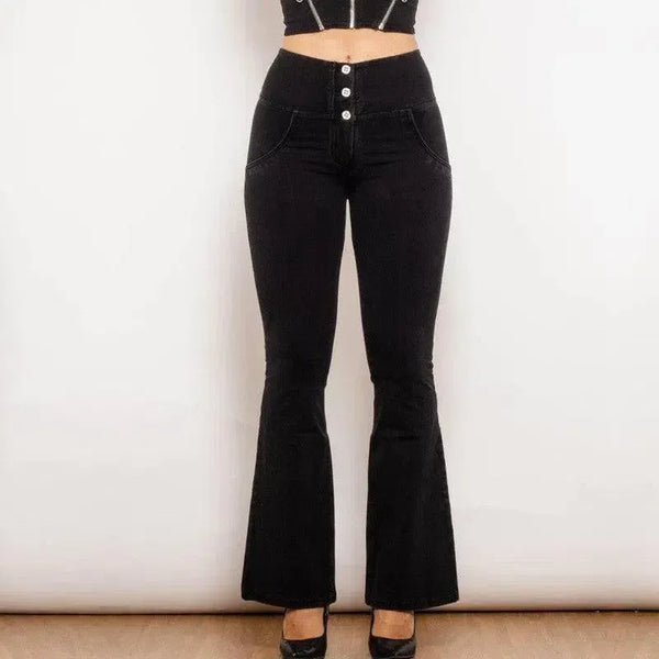 Shascullfites Melody Black Flared Lift Jeggings Button Up