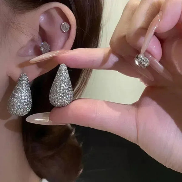 Fashion Jewelry Vintage Chunky Dome Drop Earrings For Women Glossy Stainless Steel Thick Zircon Inlaid Teardrop Earring Earrings Women