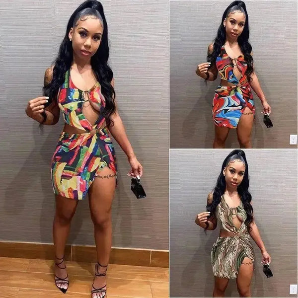 Slip Print Split Bikini Naisten Neulottu uimapuku