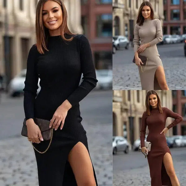Syksy ja talvi Mekot Pyöreä kaula Slim yksivärisiä