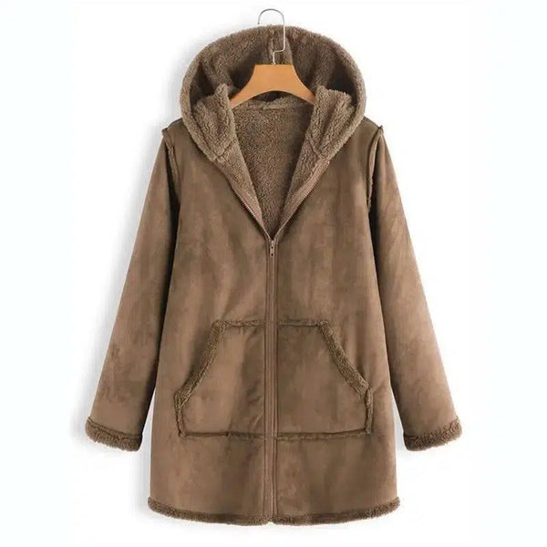 Talven taskuinen lämmin pehmoinen hupullinen takki - Tuotekuvaus: