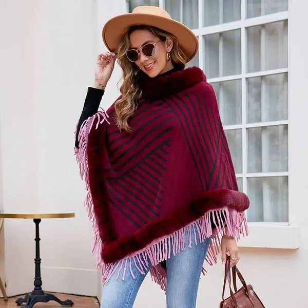 Drizzling turkis kaulus Pullover Tupsu neulottu Cape naisille