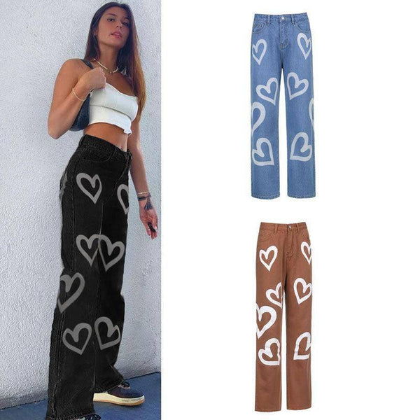 Wide-leg Jeans Women's Love Print Straight Loose Light Blue / 2XL
