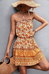 Product Description: Women's Bohemian Floral Print Strapless Dress